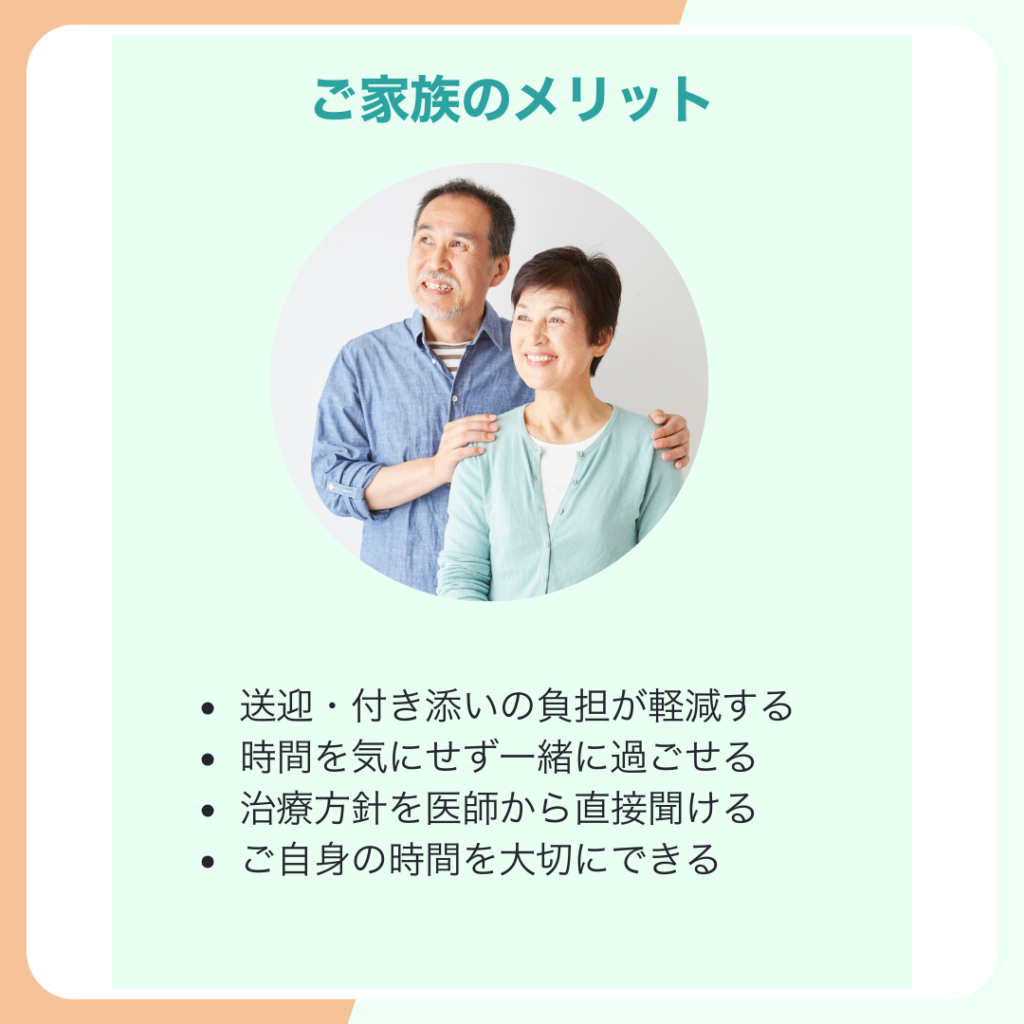 | ご家族 | 送迎・付き添いの負担が軽減する |