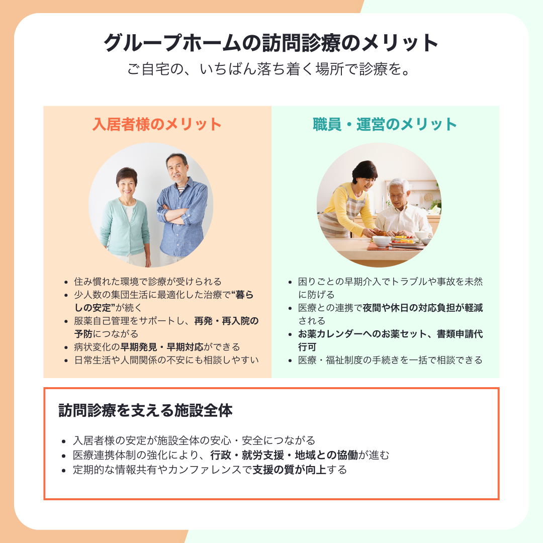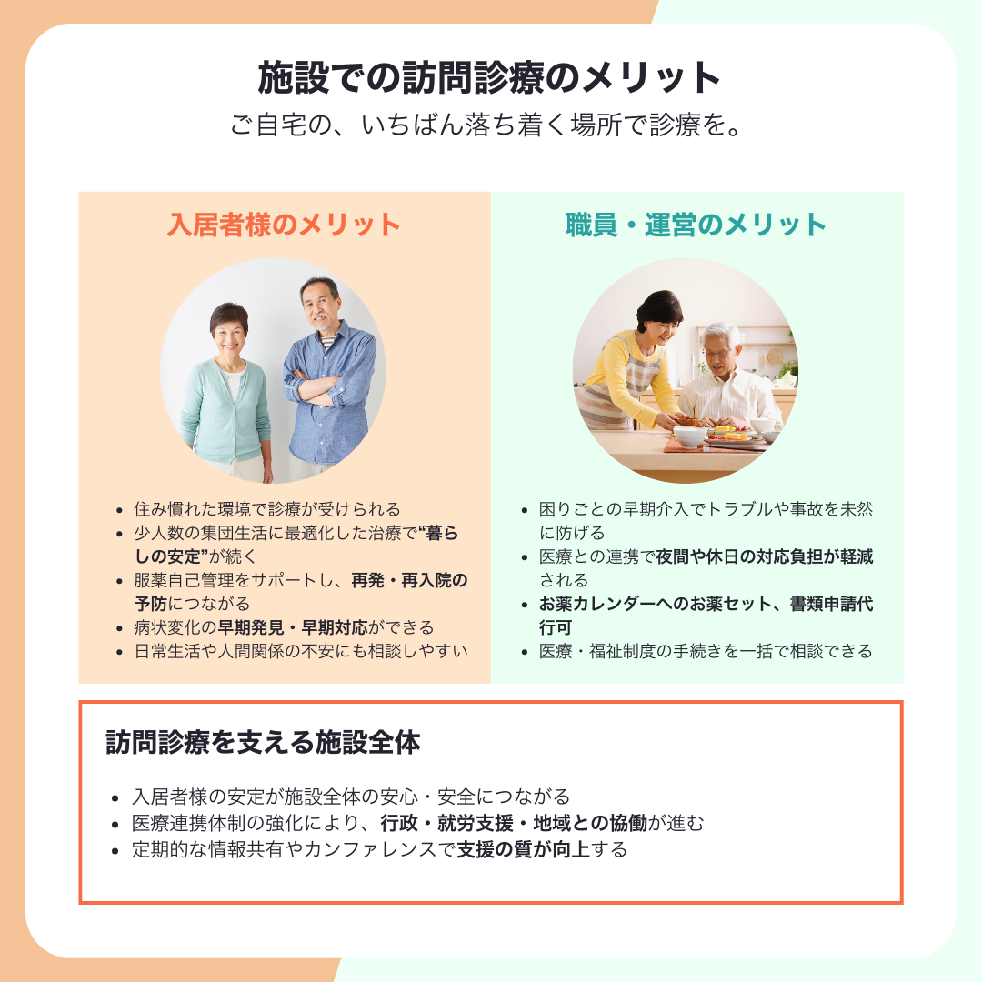 | 入居者様 | 住み慣れた環境で診療が受けられる |
