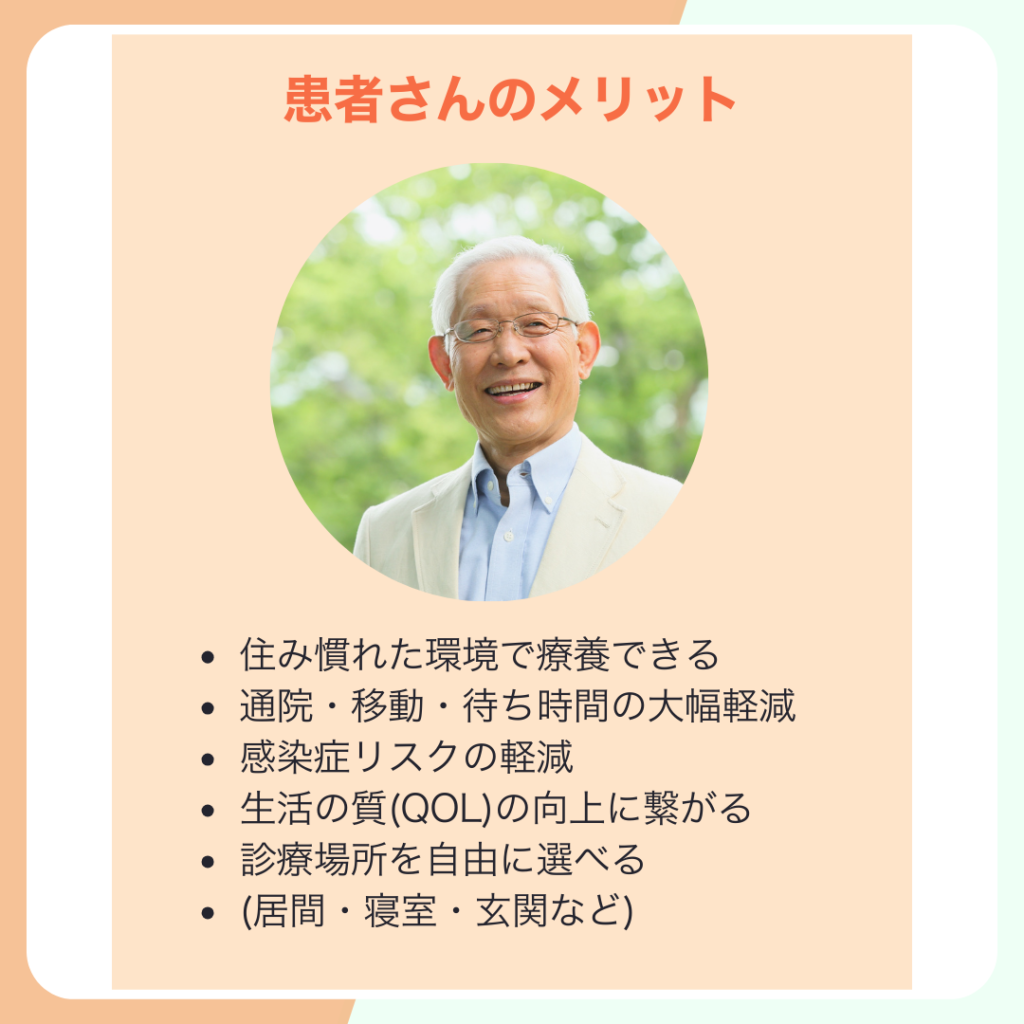 | 診療場所を自由に選べる (居間・寝室・玄関など) | |