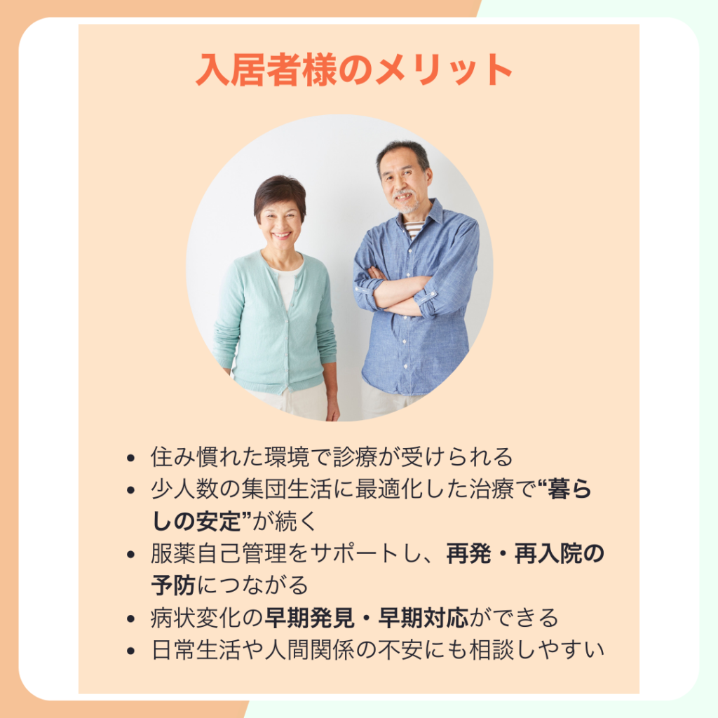 | 少人数の集団生活に最適化した治療で“暮らしの安定”が続く | |